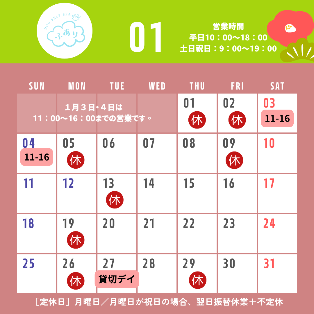 1月の営業カレンダーです☆